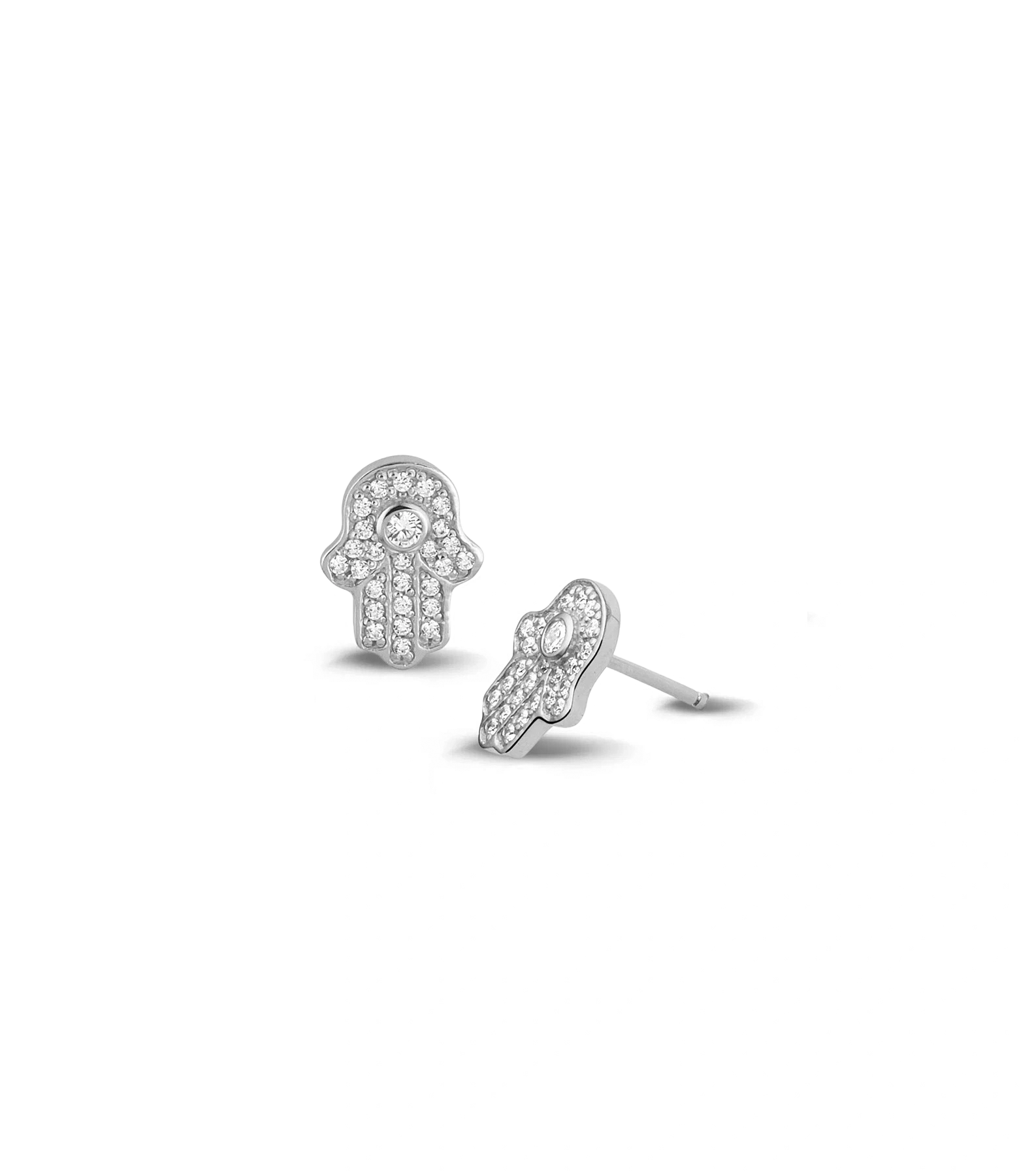Hand der Fatima, auch als Hamsa bezeichnet, zeigt eine gestreckte Hand und steht symbolisch für Frieden, Schutz und Hoffnung. Der Ohrstecker ist wunderschön verarbeitet und mit Prong-gesetzten Zirkonia Steinen versehen.