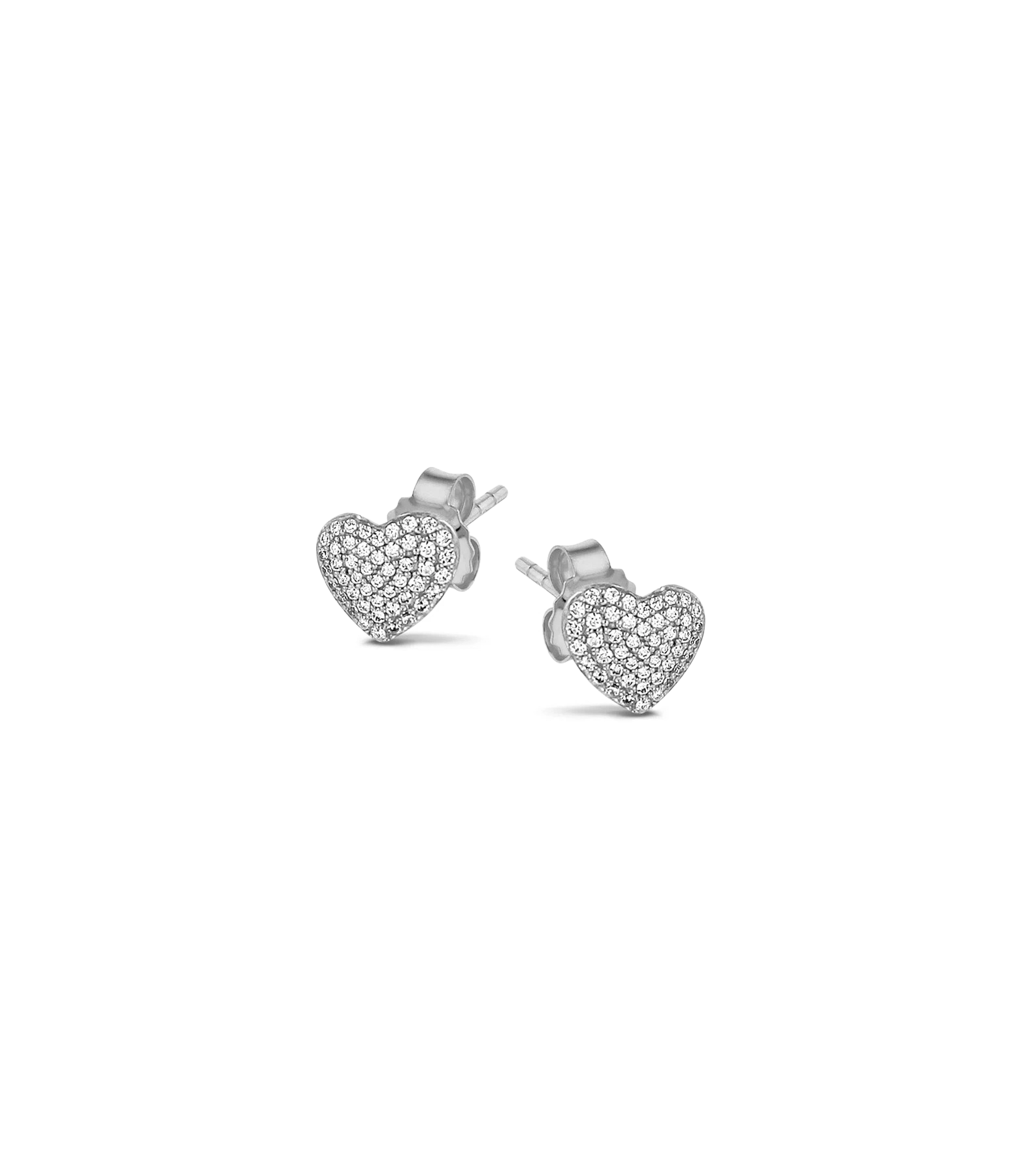 Hübsche Ohrstecker in Herz-Form mit handgesetzten Zirkonia Steinen.