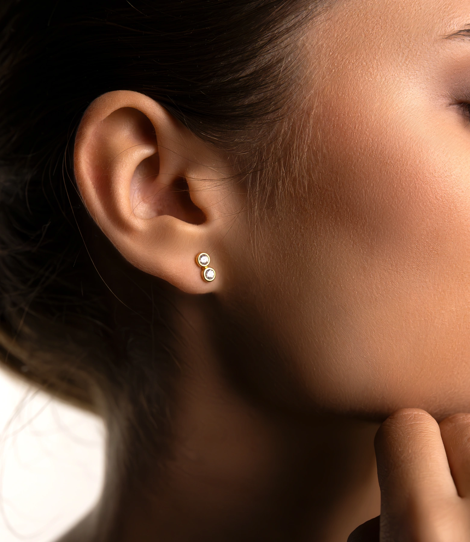 Der Ohrstecker kann auch seitlich getragen werden.